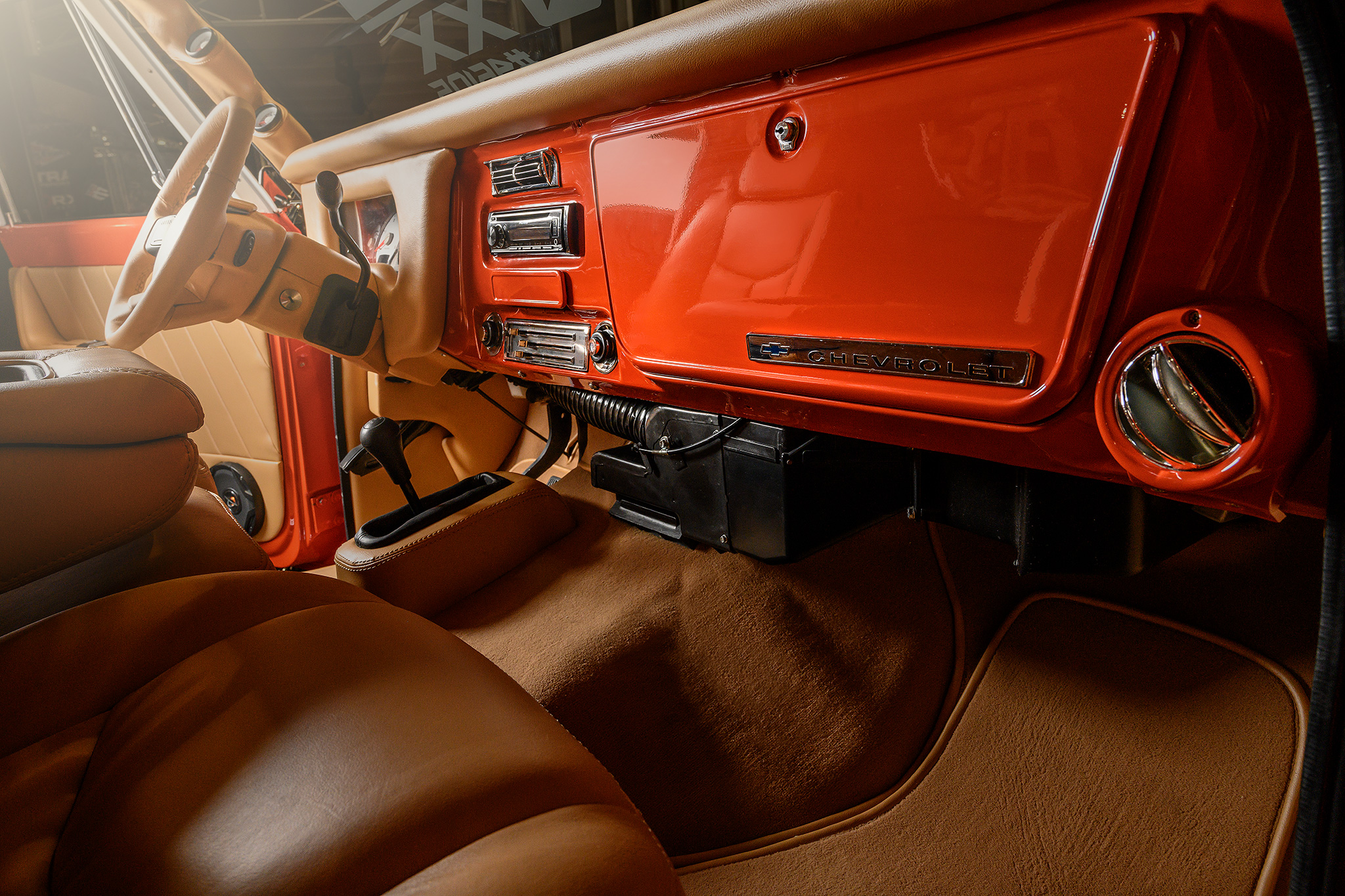 “When I was in Junior high and high school, my dad was restoring a 1967 Chevy C10 2-Wheel drive single cab shortbed. We had it painted hugger Orange and had the chassis powder coated and it was about 80% finished. Right after my senior year and graduation my parents ended up in a divorce. That truck had to get sold due to the divorce. I always wanted to see that truck get finished but we were unable to do it. That truck was sold to a gentleman and that exact truck turned into the very popular truck known in the c10 World by the name of Tootsie. The paint color had remained the same but the suspension had been changed and turned into what it is today.
