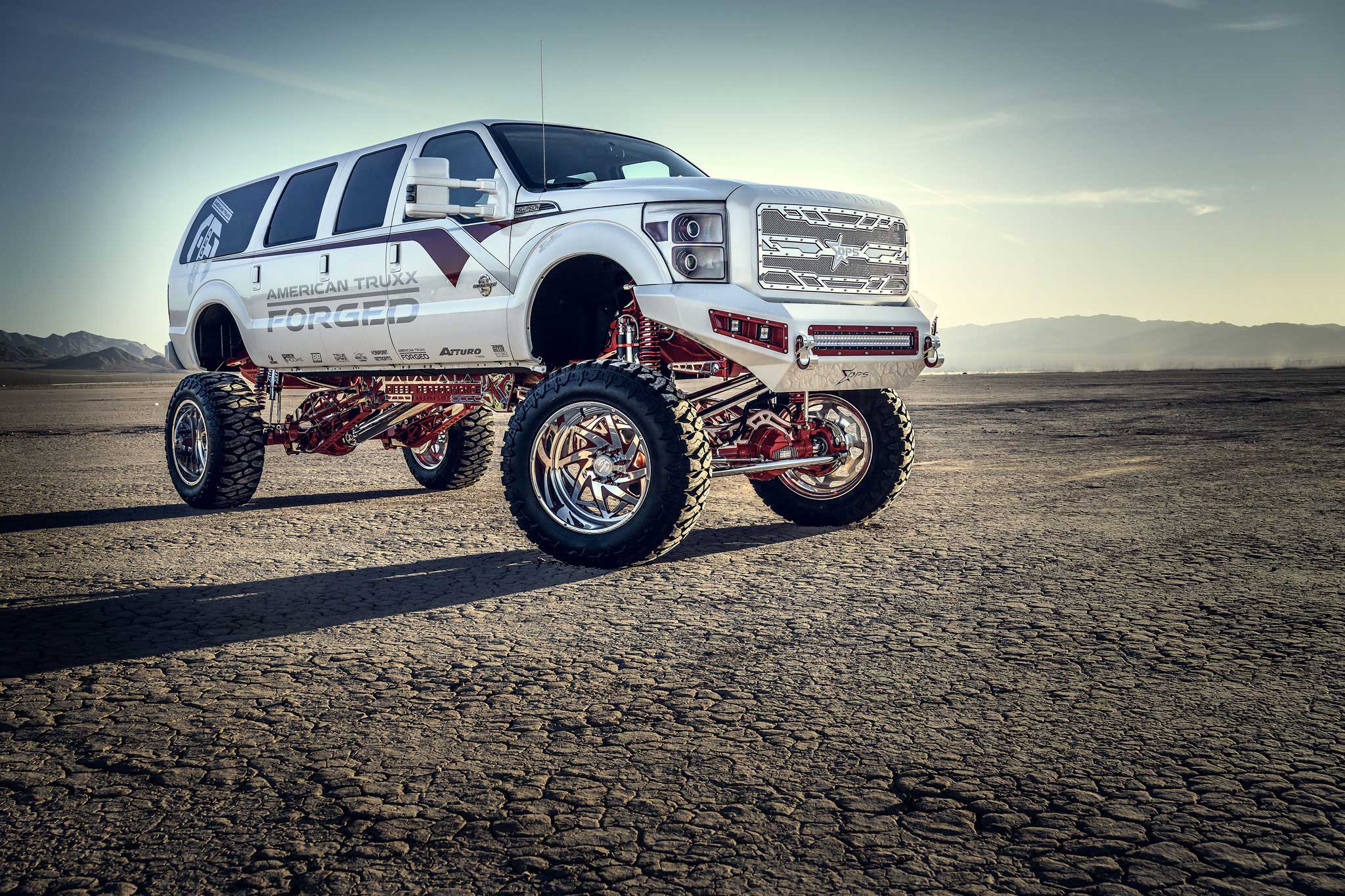 - Wheels: 24×14 American Truxx Forged 1909-Aries with custom color match accents