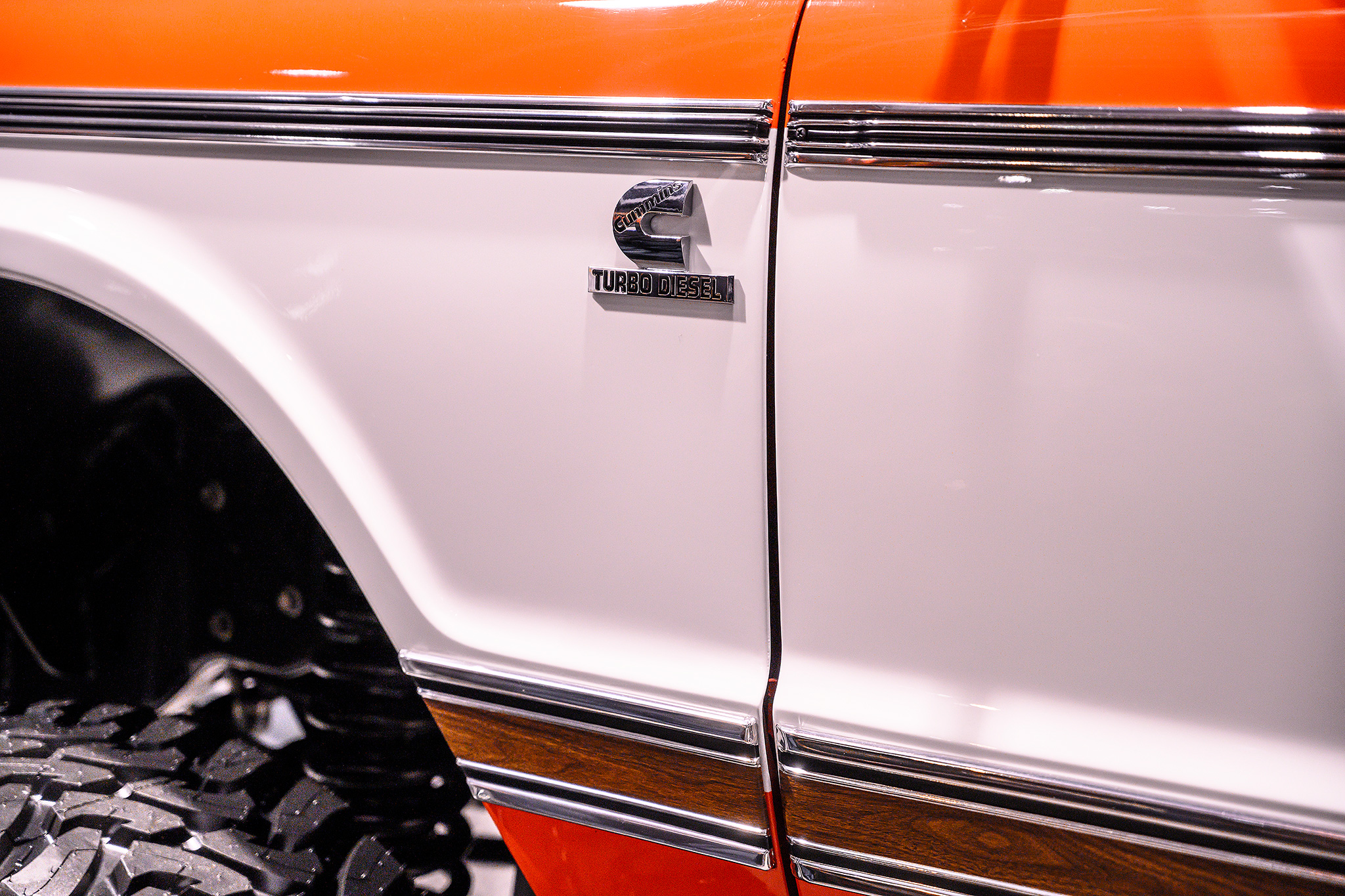 The dream of this truck started. I wanted that same hugger Orange that my dad’s pick up was but I also liked the green and white of my uncles truck that I painted. So I decided to build a lifted Cummins swap orange and white truck with the woodgrain trim. It started off as what would just be a cool driver, but the more and more I got into it the more I went overboard.